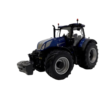 Мащабен модел на трактора New Holland T7.315 HD Blue Power, изключително детайлен, с управляем преден мост, функциониращи връзки и отделна предна тежест. Мащаб 1:32, метална отливка, за възраст +14 години.